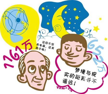 俗話說(shuō)“有心栽花花不成,無(wú)心插柳柳成蔭”,購(gòu)彩過(guò)程往往也如是,精心選擇的號(hào)碼不一定中獎(jiǎng),偶爾或隨意選的號(hào)卻往往帶來(lái)意外驚喜;有些人為中獎(jiǎng)殫精竭慮一無(wú)所獲,也有些人稀里糊涂地就被大獎(jiǎng)砸中了。 原想要臺(tái)電扇卻得了1100萬(wàn) 江蘇省體彩為了回饋彩民而開(kāi)展“買大樂(lè)透送電扇”的活動(dòng),無(wú)錫的張大爺就是沖著電扇買了一張12元的復(fù)式票,然后再用剩余的3元錢又買了一注追加票。結(jié)果,這個(gè)“無(wú)心插柳”舉動(dòng)的結(jié)果是:張大爺電扇沒(méi)中到,卻一舉中得大樂(lè)透11049期頭獎(jiǎng),獎(jiǎng)金高達(dá)1161萬(wàn)元。 張大爺已經(jīng)買了好幾年彩票,但每次數(shù)額都不大,從沒(méi)有超過(guò)10元錢,更別說(shuō)什么復(fù)式票了。不過(guò)眼下的買大樂(lè)透送電扇活動(dòng)還是挺吸引張大爺?shù)模灰I6碼的復(fù)式票就有機(jī)會(huì)中臺(tái)電扇。“不就是多加幾塊錢嗎?正好夏天也來(lái)了,中臺(tái)電扇還是不錯(cuò)的。”張大爺原本只是抱著這樣的想法。 4月30日這天,他獨(dú)自一人來(lái)到了02777銷售站點(diǎn),在仔細(xì)咨詢過(guò)之后,掏出了15塊錢,打了一張最小的6碼的12元復(fù)式票。 這張復(fù)式票很快就被打了出來(lái),遺憾的是序列號(hào)的后兩位并不是“88”,所以沒(méi)中得電扇。銷售員見(jiàn)張大爺很失望就安慰他:“你正好還有3塊錢零錢,不如再來(lái)1注追加吧。”張大爺當(dāng)時(shí)的情緒不高,還以為站點(diǎn)忽悠他呢,不過(guò)想想這3元錢雖然不能買復(fù)式,隨機(jī)還是可以買的,就這樣,一張隨機(jī)的3元票出爐了。 第二天開(kāi)獎(jiǎng),張大爺認(rèn)真核對(duì)中獎(jiǎng)號(hào)碼后樂(lè)開(kāi)了花。看到他的興奮樣子,老伴問(wèn)是不是中了1000多元啊?張大爺回答道:“你少說(shuō)了個(gè)萬(wàn)字。” 夢(mèng)到中獎(jiǎng)號(hào)堅(jiān)守4年有回報(bào) 有人為了中獎(jiǎng)費(fèi)盡心思,可也有人僅憑著夢(mèng)里的一組號(hào)碼,竟然意外中得大獎(jiǎng)。5月7日中得大樂(lè)透11052期一等獎(jiǎng)的吉林彩民張先生就是這樣一位幸運(yùn)的彩民。 “要不是我媳婦用手機(jī)上網(wǎng)看到了開(kāi)獎(jiǎng)信息,我到現(xiàn)在還不知道中獎(jiǎng)呢!”提起中得超級(jí)大樂(lè)透652萬(wàn)元的獎(jiǎng)金,張先生笑得合不攏嘴。“我買彩票的號(hào)碼,我媳婦都知道,平時(shí)我忙,雖然買了彩票,但是總是忘記兌獎(jiǎng),這回多虧我媳婦看到開(kāi)獎(jiǎng)號(hào),不然說(shuō)不定錯(cuò)過(guò)大獎(jiǎng)呢。” |